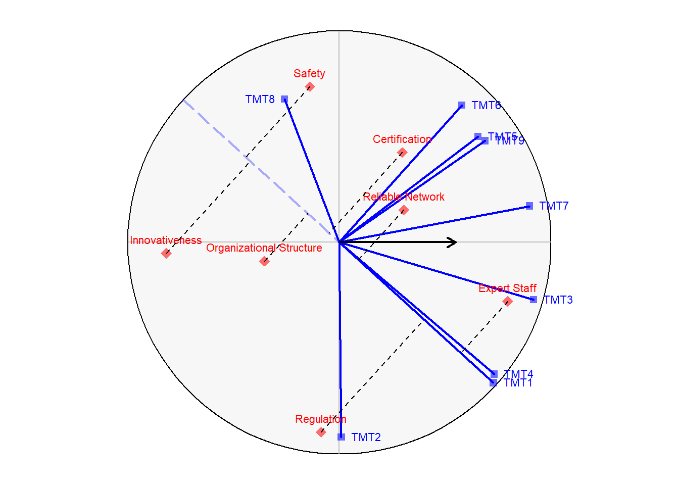 The vector model of unfolding is used to geometrically visualize each respondents preference order of the strategic items.